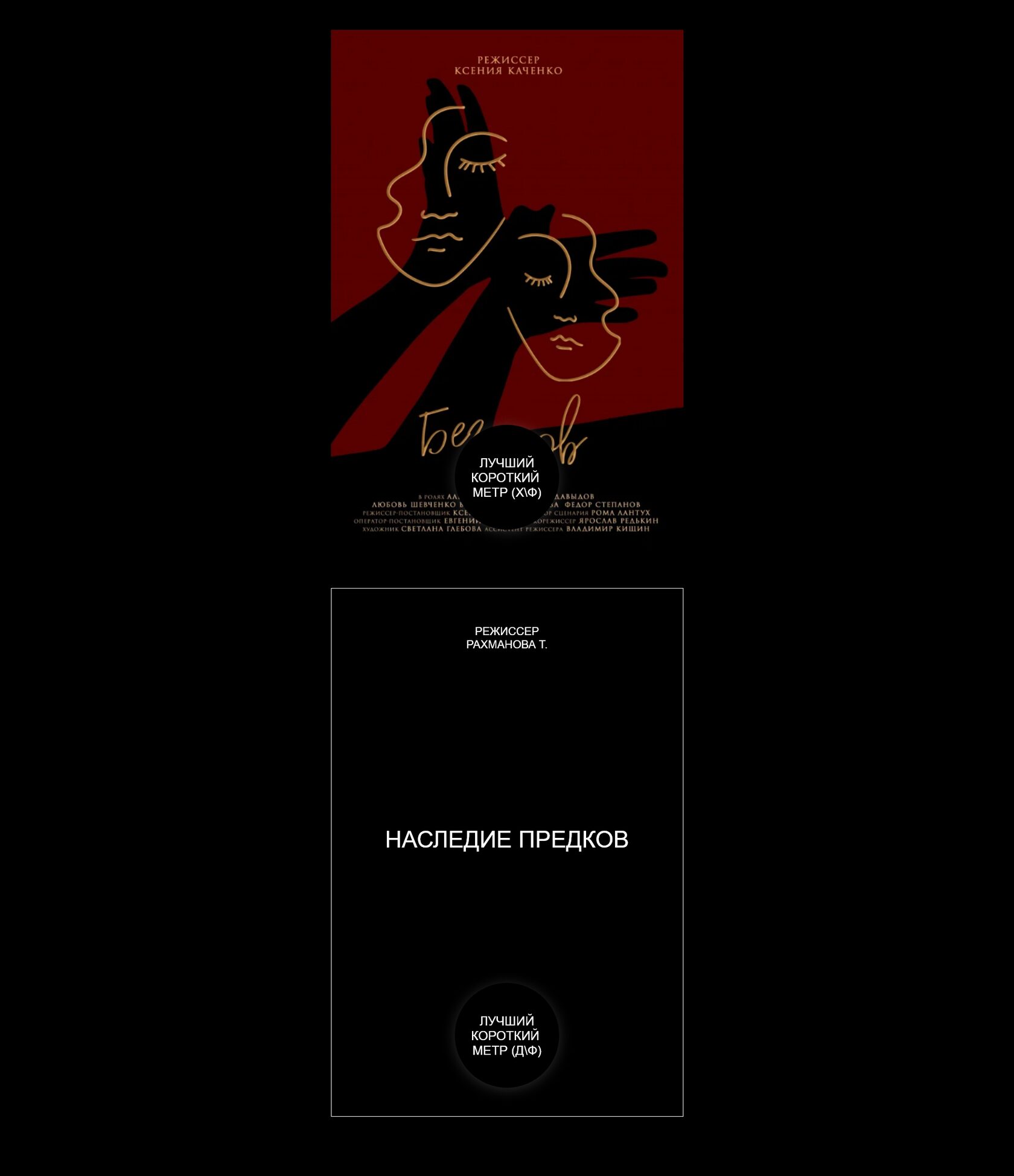 2. Присвоить номинацию "Лучший короткометражный фильм" кинокартине "Застенок" (реж. Панкова Ю., продюсер Ахундов Э.) с выплатой денежного вознаграждения в размере 10000,00 (десяти тысяч) рублей. Заявление на выдачу приза оформляется через личный кабинет на сайте www.eternitypictures.ru.